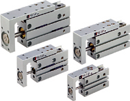 工作台与气缸紧凑的一体化 最适合精密组装用的气动滑台 高刚性/高精度 由于采用十字滚柱导轨,可实现无松动的平稳运动 小型/轻量 由于采用双缸结构,得到两倍的输出力 |